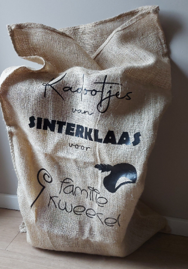 Jute zak XXL | Kadootjes van sinterklaas voor fam. naam