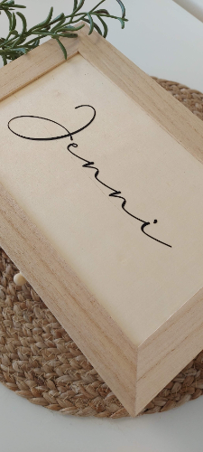 Voor de persoonlijke touch wordt op de deksel de naam gegraveerd.