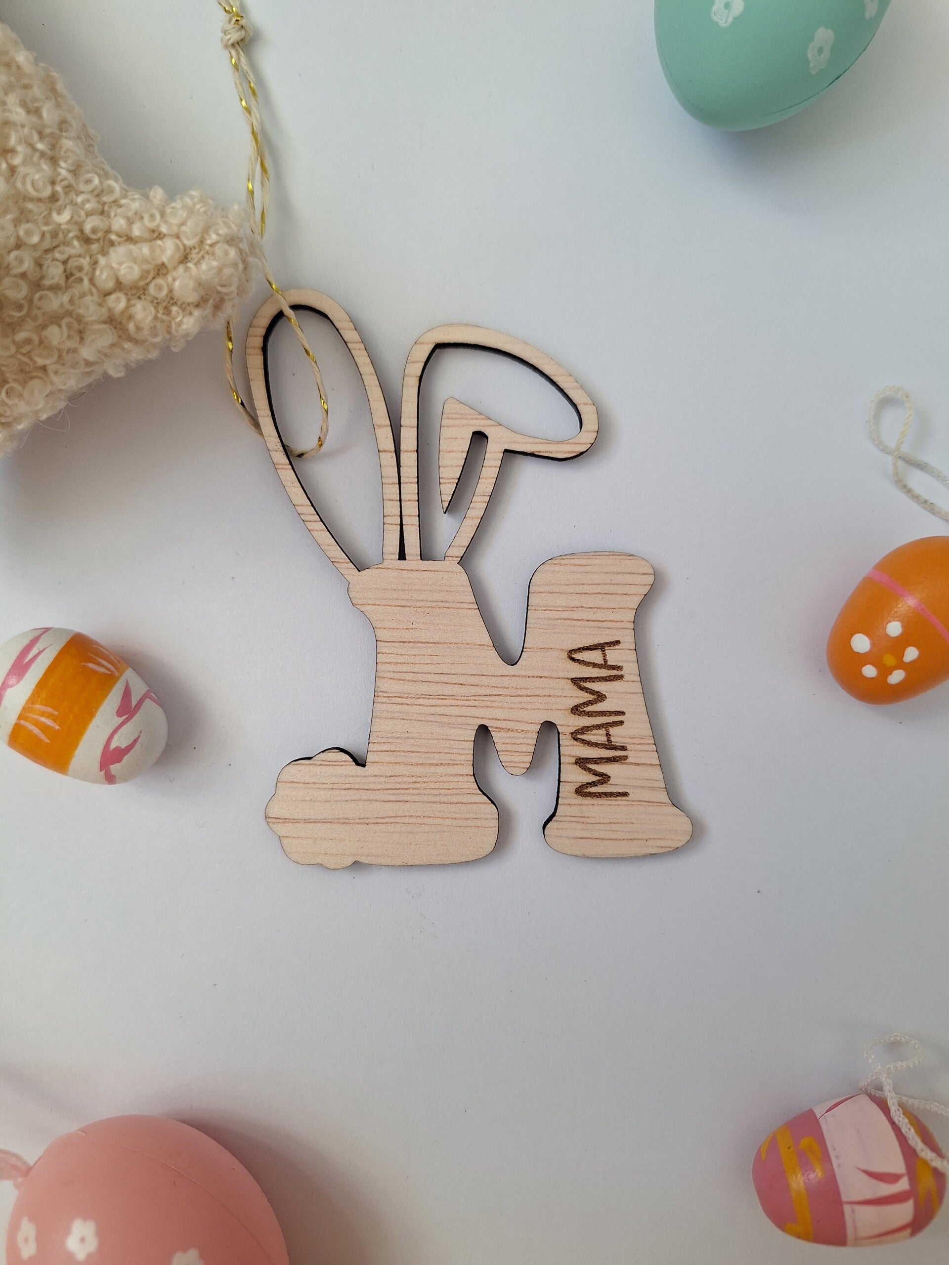 Maak de paastak in huis nog persoonlijker met een paashanger in de vorm van je beginletter met paashaas oortjes en een lief bunny staartje, met naam van jou kindje of jezelf.