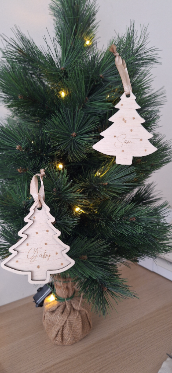 Hang deze unieke houten kerstbal in de vorm van een kerstboom met naam in de kerstboom, zo maak je de boomversiering nog persoonlijker! 🎄